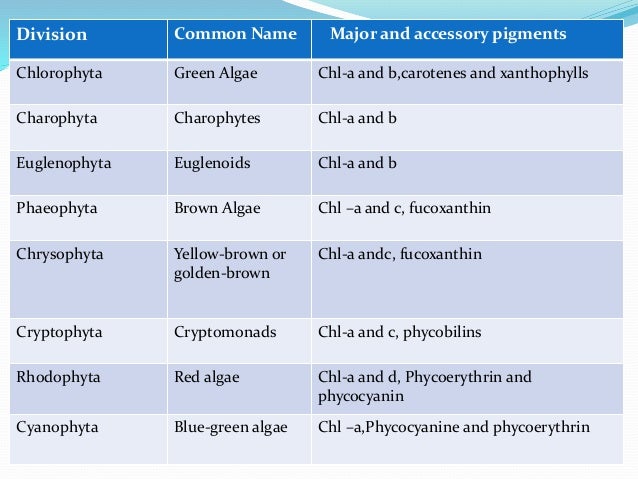 Accessory Non Chlorophyll Pigments In Different Algal Groups Download Scientific Diagram